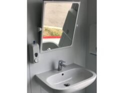 Este bungalow sanitario es la solución ideal y más inclusiva para espacios que requieren instalaciones accesibles para personas con movilidad reducida (PMR). Su diseño compacto y funcional garantiza la seguridad y el confort de los usuarios, cumpliendo con todas las normativas de accesibilidad.