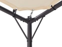 Estructura robusta de acero con recubrimiento en polvo en negro, con un toldo beige de diseño elegante. Ofrece una excepcional protección UV UPF 50+ (filtra el 98% de la radiación UV). Su montaje es sencillo, con estacas incluidas y sin necesidad de cimientos.